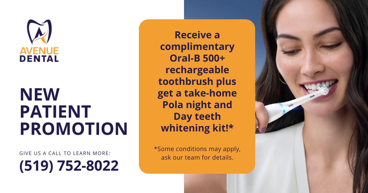 We are offering a complimentary Oral-B 500+ rechargable toothbrush AND a take-home Pola Night and Day teeth whitening kit!*